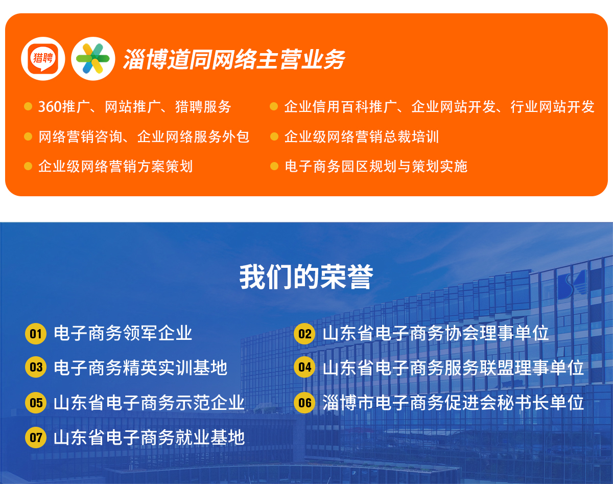 淄博道同网络科技有限公司成立于2013年1月,坐落于山东省淄博市。致力于为企事业单位提供搜索类产品和展示类广告推广服务,公司建立之初就形成了完善的客户服务体系、商务与技术体系、人力资源培训与晋升体系,及猎聘招聘平台服务,致力打造国内优秀的网络营销服务团队。