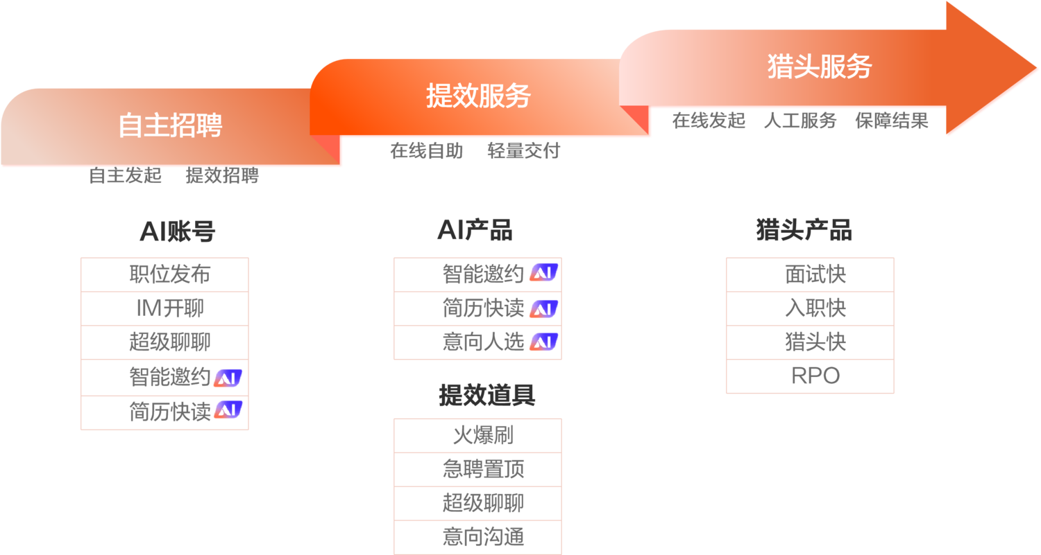 产品服务多:企业不同招聘岗位及场景 ,提供不同招聘服务支持;